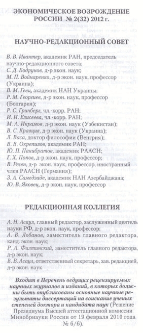 • «Экономическое возрождение России в XX веке»: Материалы VII всероссийской научно-практической конференции: Научные труды Вольного экономического общества России т. 69 — М., СПб: ВЭО, 2006 — 624 с. ISBN 5-91460-053;