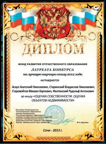 А. Н. Асаул — лауреат конкурса Фонда развития отечественного образования на лучшую научную книгу 2008 года среди преподавателей высших учебных заведений в номинации «Экономика» за книгу «Модернизация экономики на основе технологических инноваций» / А. Н. Асаул (и др.). — СПб. АНО ИПЭЭС, 2008. — 606 с. (2009 год).