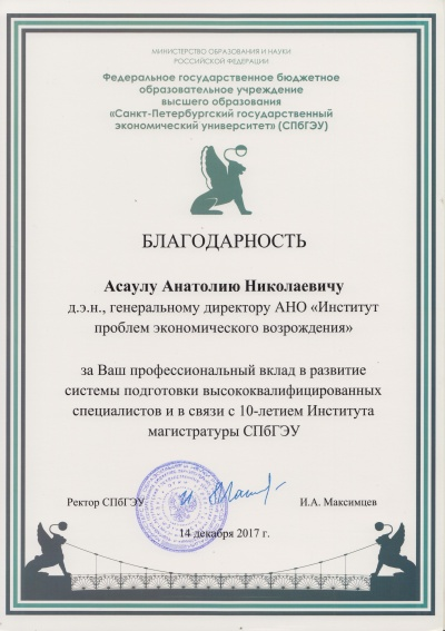 Признание профессионального вклада профессора Асаула в развитие системы подготовки магистрантов