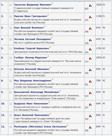 Профессор А.Н. Асаул в рейтинге академической активности и популярности экономистов России занимает 13 место (январь 2016 года)