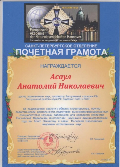 Профессор А. Н. Асаул — член Сената ВЭО России!