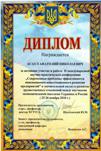 Участие в конференции "Современные проблемы эффективности инновационно-инвестиционного развития предприятия". 25-26 октября 2010 г.