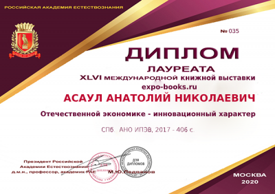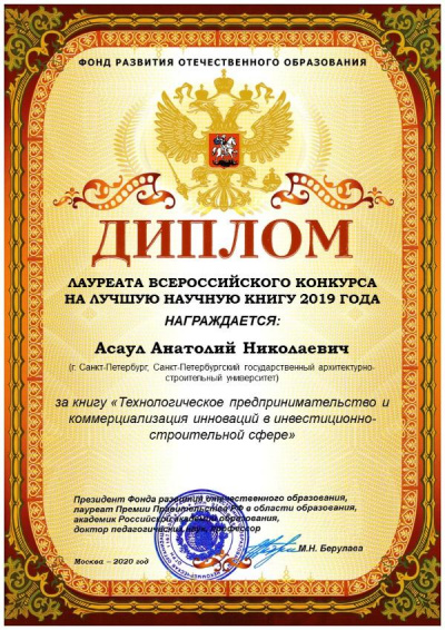 Асаул Анатолий Николаевич - Лауреат конкурса на лучшую научную книгу 2019