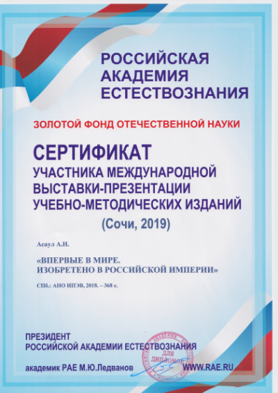На международной выставке в Сочи награждены 3 книги профессора А.Н.Асаула
