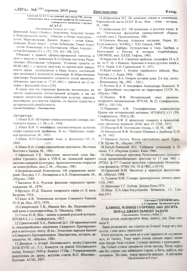 15. Добродомов И.Г. Об аланизмах в русском языке. В кн.: Осетинская филология (межвузовский сборник статей), вып.2. Орджоникидзе, 1981.