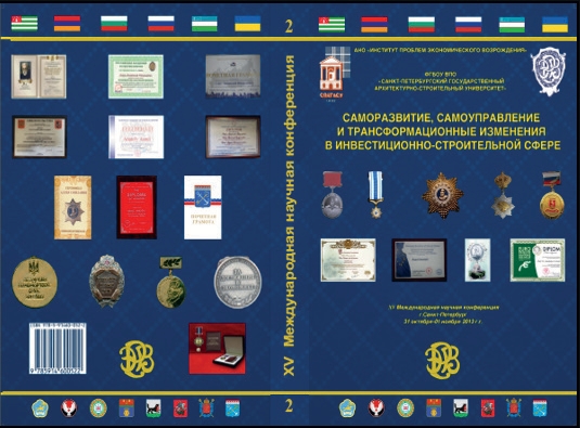 • Саморазвитие, самоуправление и трансформационные изменения в инвестиционно-строительной сфере: Материалы XV Международной научной конференции, под ред. заслуженного деятеля науки РФ, заслуженного строителя РФ, д-ра экон. наук, профессора А. Н. Асаула. Т. 2. СПб.: АНО ИПЭЗ, 2013. — 432 с. — ISBN 978-5-91460-052-2.