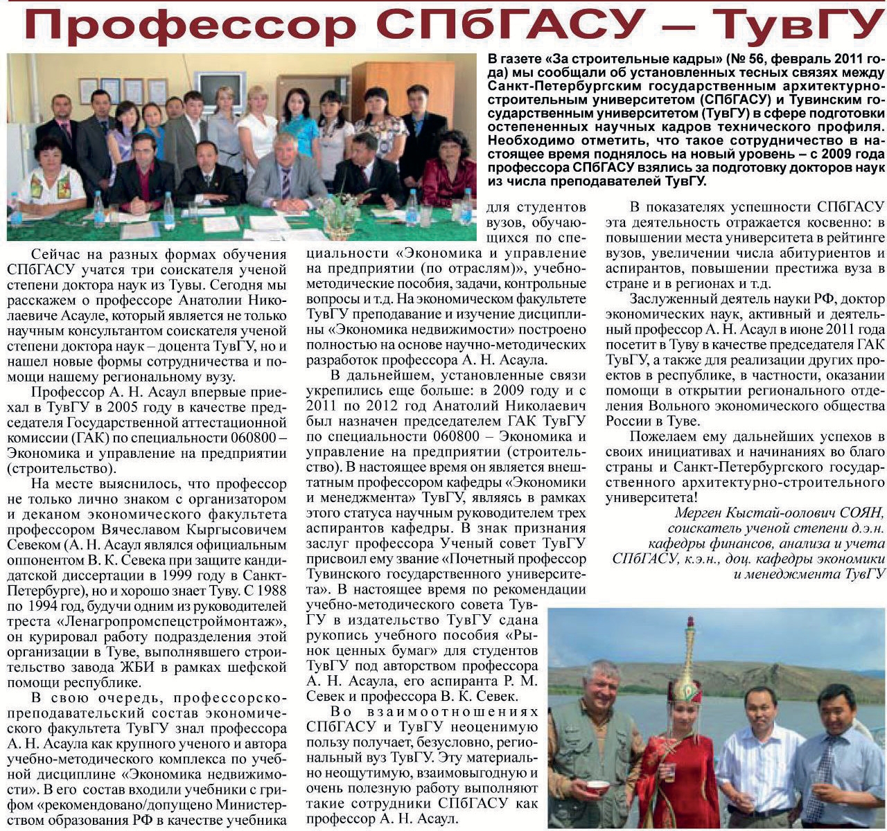 Газета СПбГАСУ «За строительные кадры» №58. Апрель 2011. (стр. 2). Тираж 999 экз.
