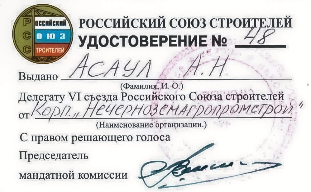 Почётный строитель Нечернозёмагропромстроя (1995 год)