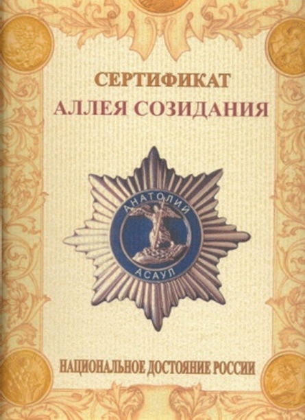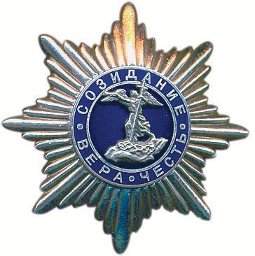 Орден «Звезда созидания». Надпись: Созидание. Вера. Честь
