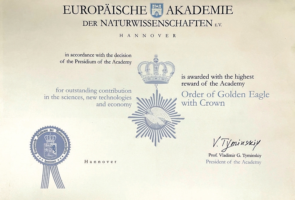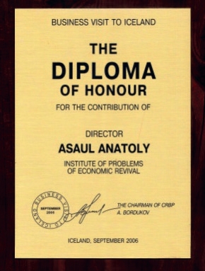 Глубокого уважения заслуживает и активная организаторская работа, которой Вы уделяете самое пристальное внимание. Всё, чего Вы добились в жизни, — результат больших усилий, таланта и высокой организованности в решении поставленных задач. А высшая награда Международного Союза экономистов — Диплом «Золотой Фонд МСЭ» — свидетельствует о значимости Вашей общественной деятельности.