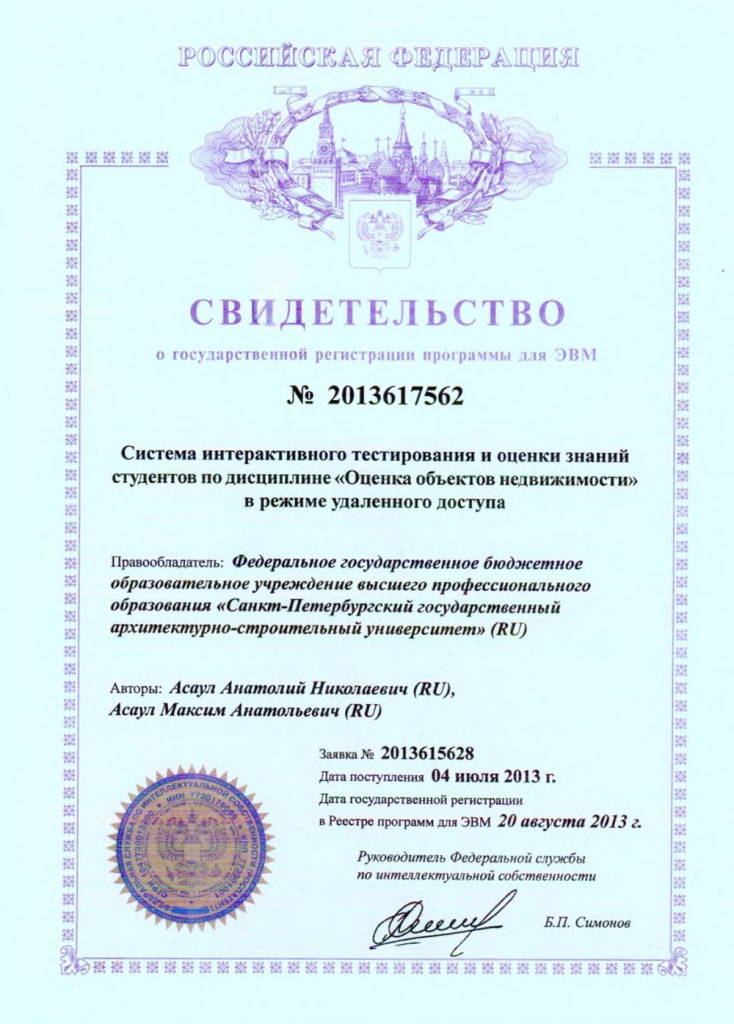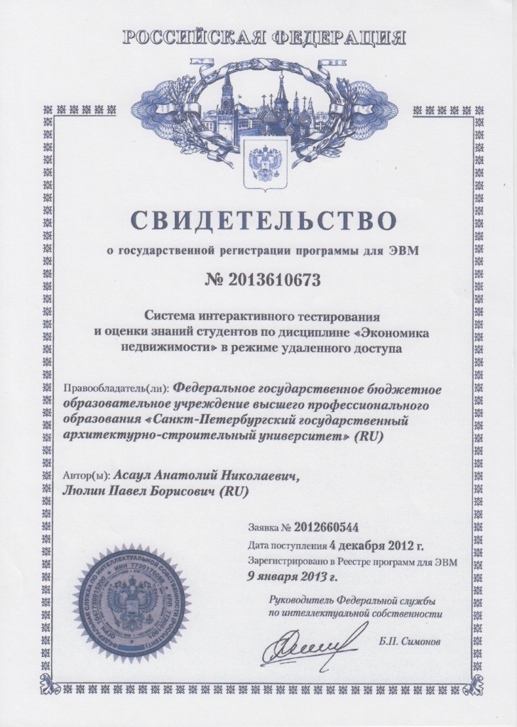 Система интерактивного тестирования и оценки знаний студентов по дисциплине "Оценка объектов недвижимости" в режиме удалённого доступа