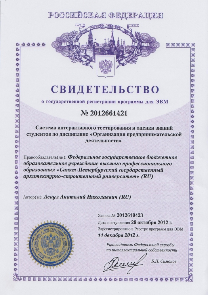 Система интерактивного тестирования и оценки знаний студентов по дисциплине "Организация предпринимательской деятельности"