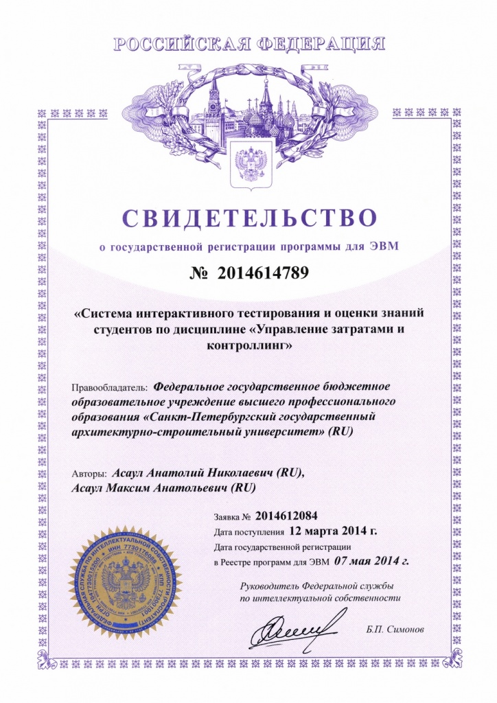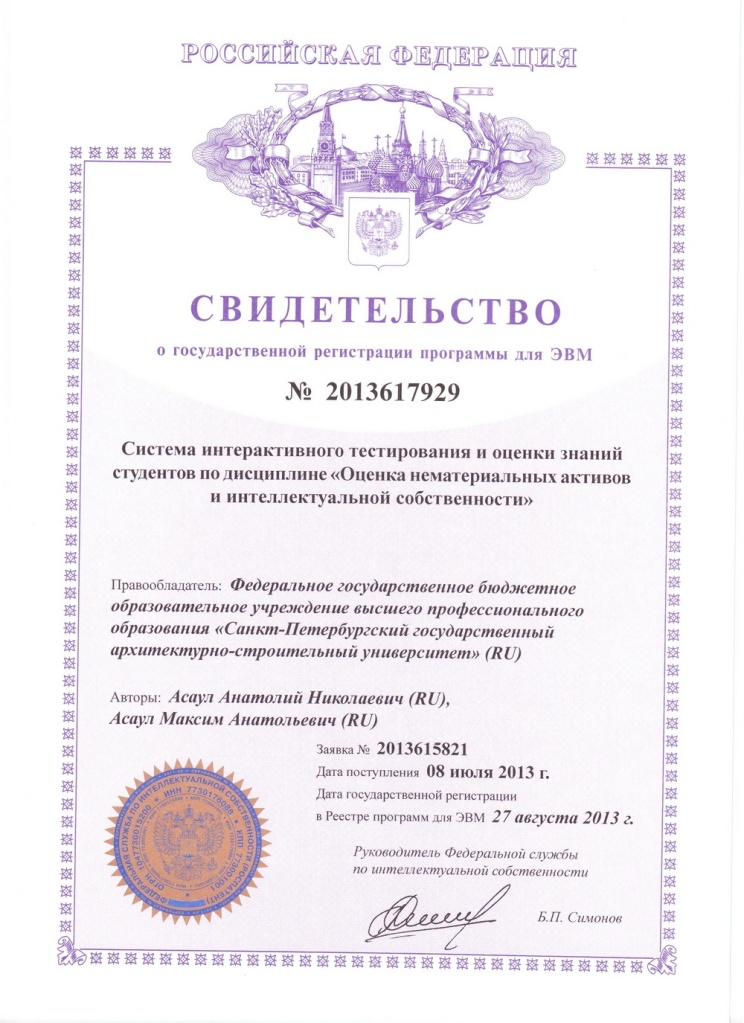 Система интерактивного тестирования и оценки знаний студентов по дисциплине "Оценка нематериальных активов и интеллектуальной собственности"