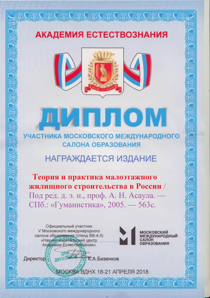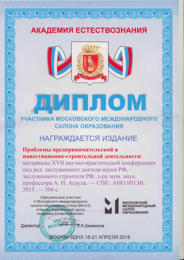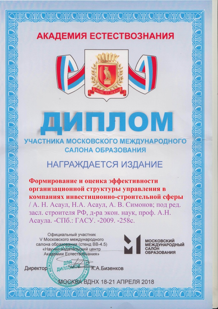 - Асаул А.Н., Асаул М.А., Заварин Д.А., Рыбнов Е.И., под ред. Асаула А.Н. Инновации в инвестиционно-строительной сфере