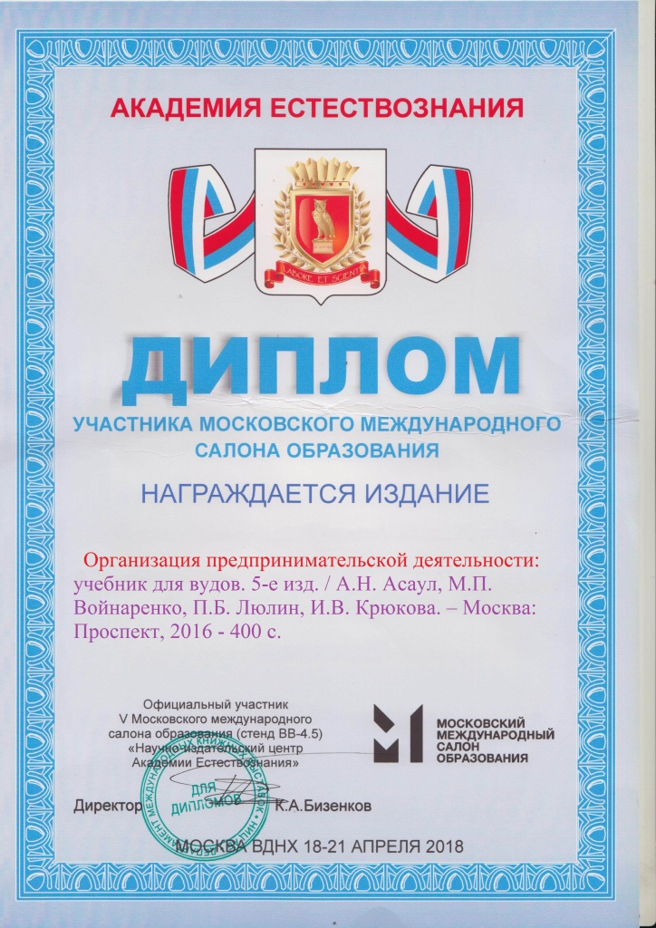- Асаул А.Н. Организация предпринимательской деятельности
