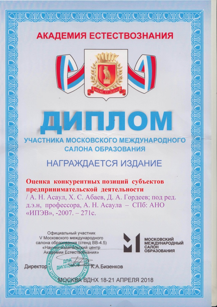 - Асаул А.Н., Абаев Х.С., Гордеев Д.А.; под ред. Асаула А.Н. Оценка конкурентных позиций субъектов предпринимательской деятельности