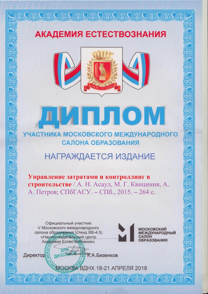 - Асаул А.Н., Квициния М.Г., Петров А.А. Управление затратами и контроллинг в строительстве