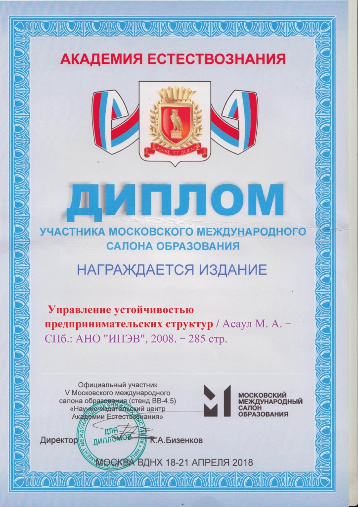 - Асаул М.А. Управление устойчивостью предпринимательских структур