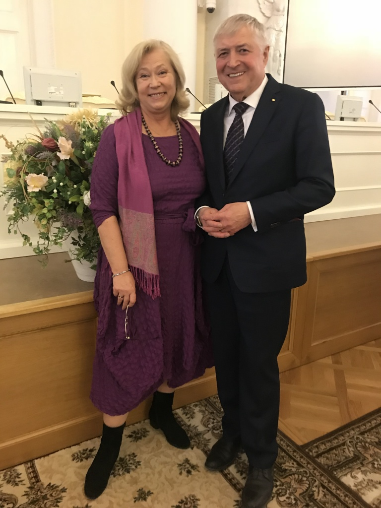 Фотографии на память с художественным руководителем федерального государственного бюджетного учреждения культуры "Российский государственный академический Большой драматический театр имени Г.А. Товстоногова" Могучим Андреем Анатольевичем и заместителем художественного руководителя по общественно-просветительской и исследовательской деятельности, заслуженный деятель искусств РФ Шимбаревич Ирина Николаевна.