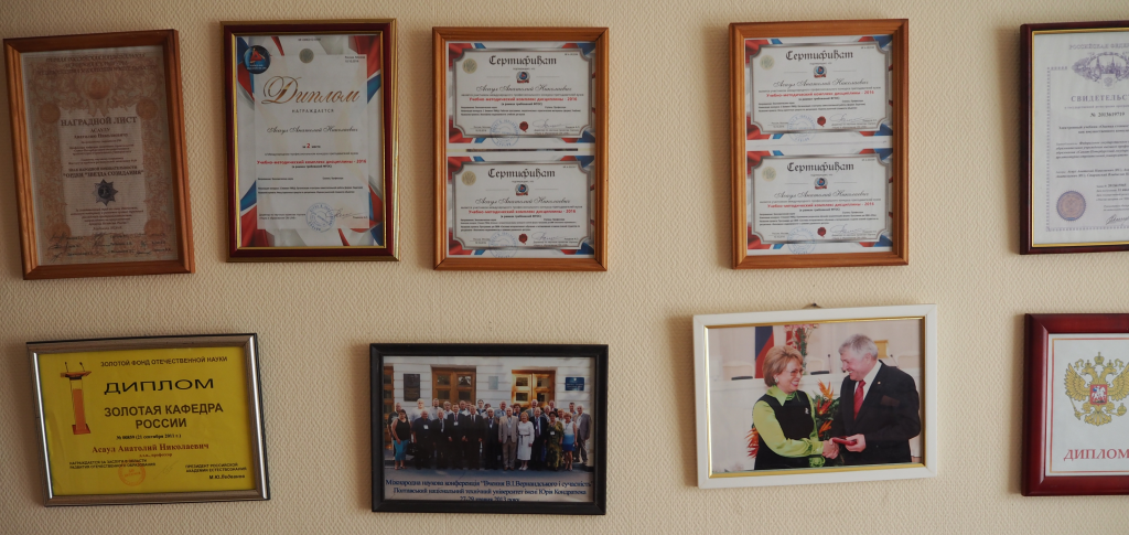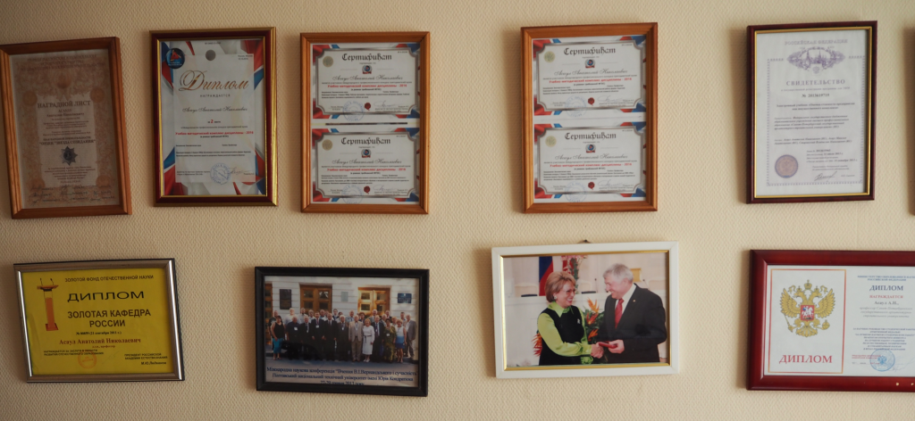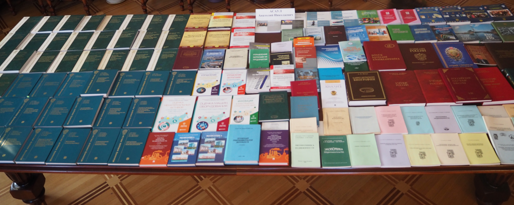 Здесь где представлены, дипломы, грамоты за участие в книжных выставках (Москва, Санкт-Петербург, Екатеринбург, Париж, Лондон, Франкфурт-на-Майне, Барселона) и награды лидера научной школы. Участникам собрания вручены материалы XIX научной конференции.
