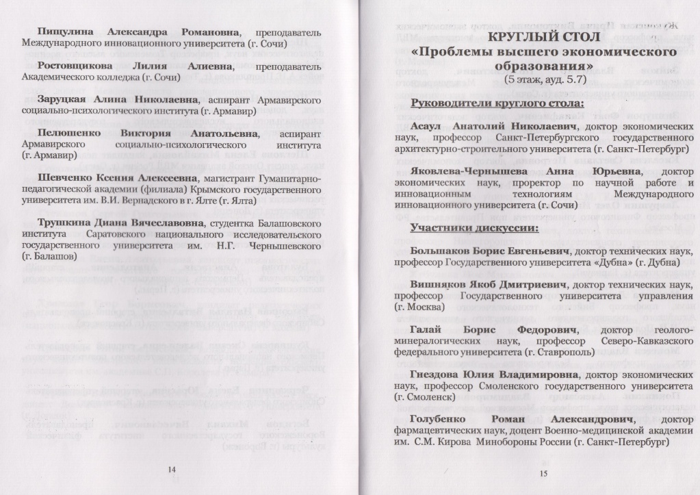 На Всероссийской научно-практической конференции «Состояние и перспективы развития высшего образования в современном мире», прошедшей в рамках работы научного форума профессор А.Н. Асаул провёл круглый стол «Проблемы высшего экономического образования».