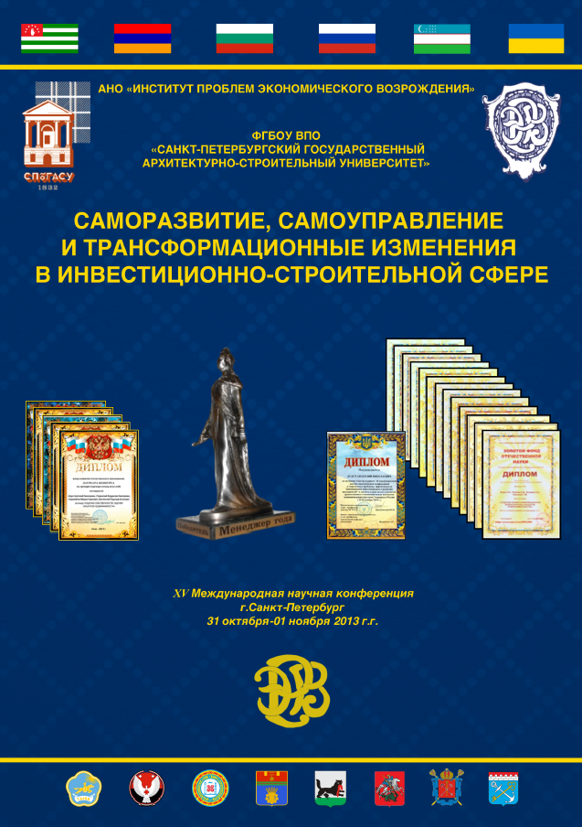 Саморазвитие, самоуправление и трансформационные изменения в инвестиционно-строительной сфере: материалы XV Международной научной конференции под ред. заслуженного деятеля науки РФ, заслуженного строителя РФ, д-ра экон. наук, профессора А. Н. Асаула. Т. 1. СПб.: АНО ИПЭВ, 2013. — 360 с.