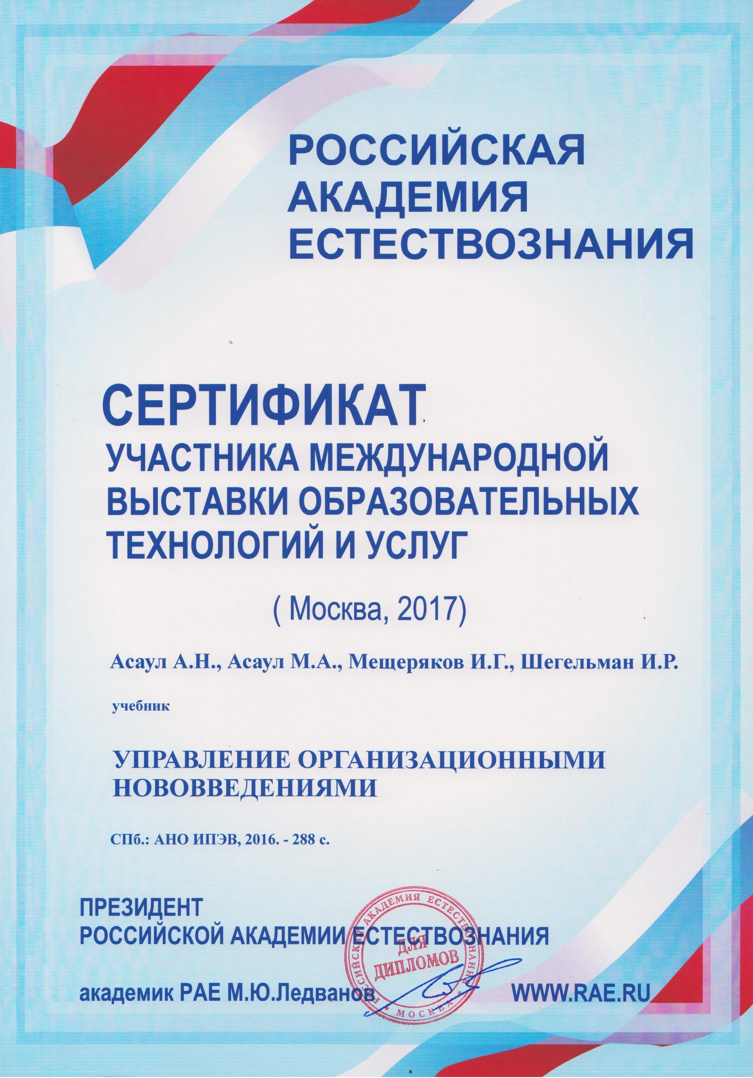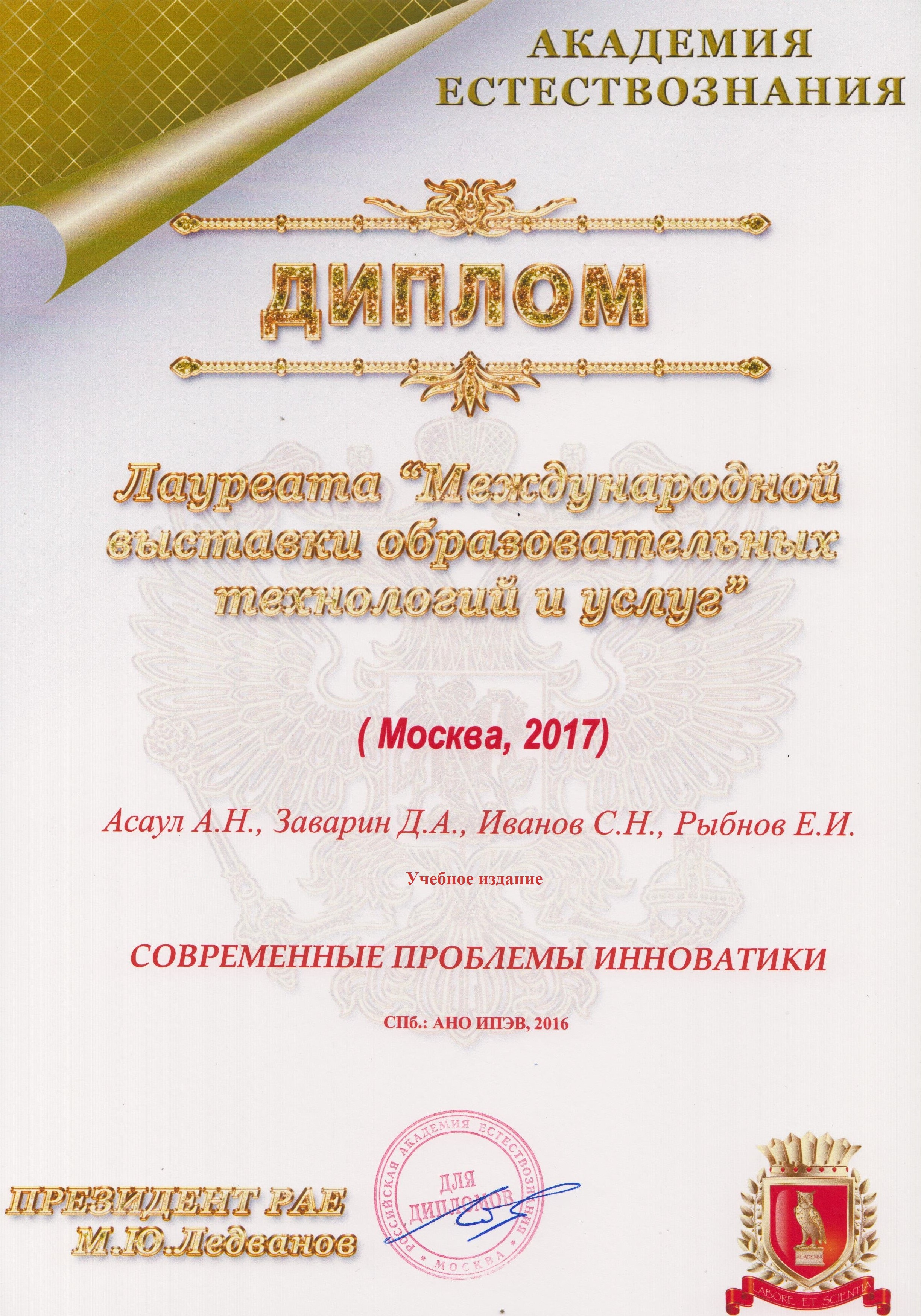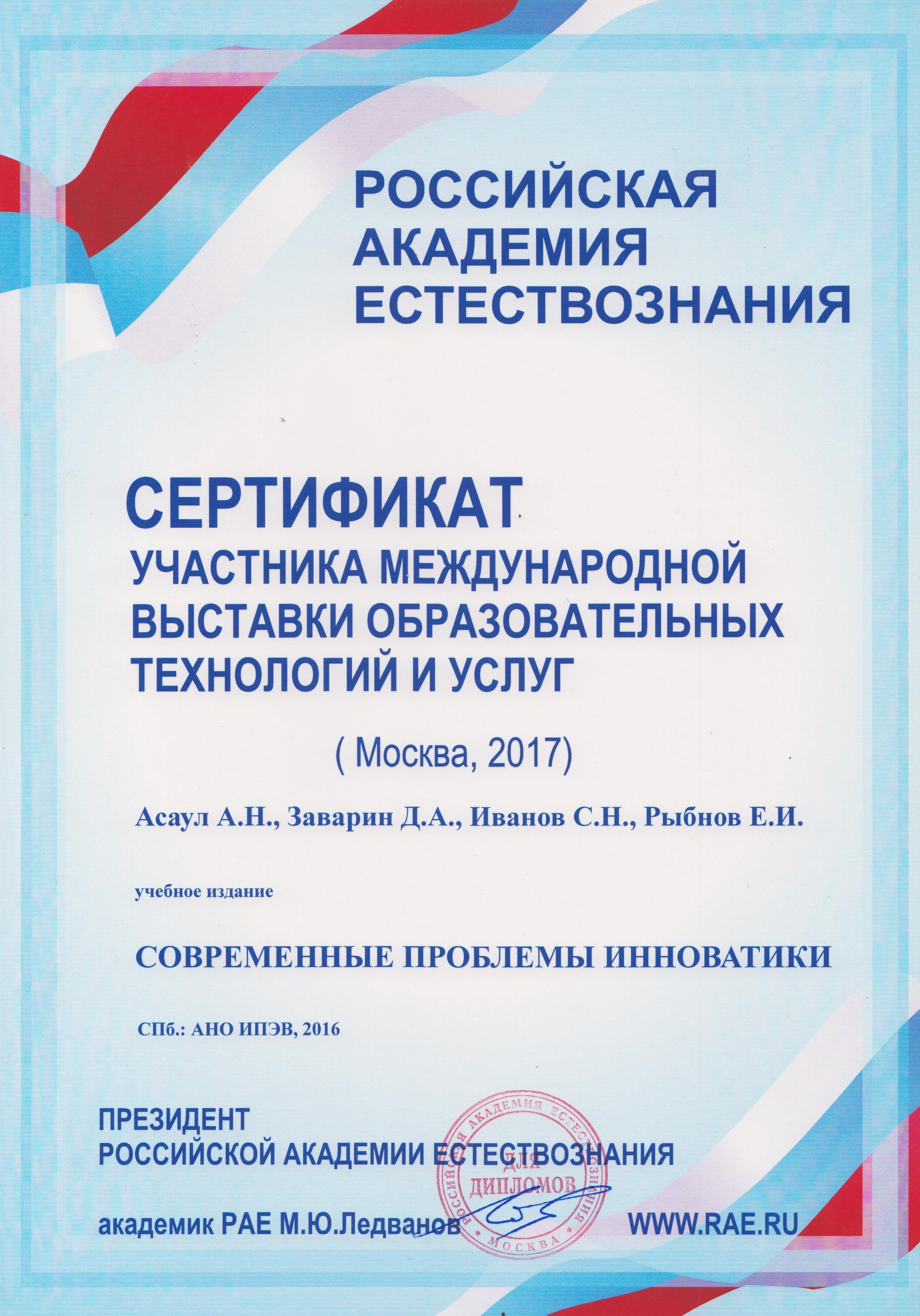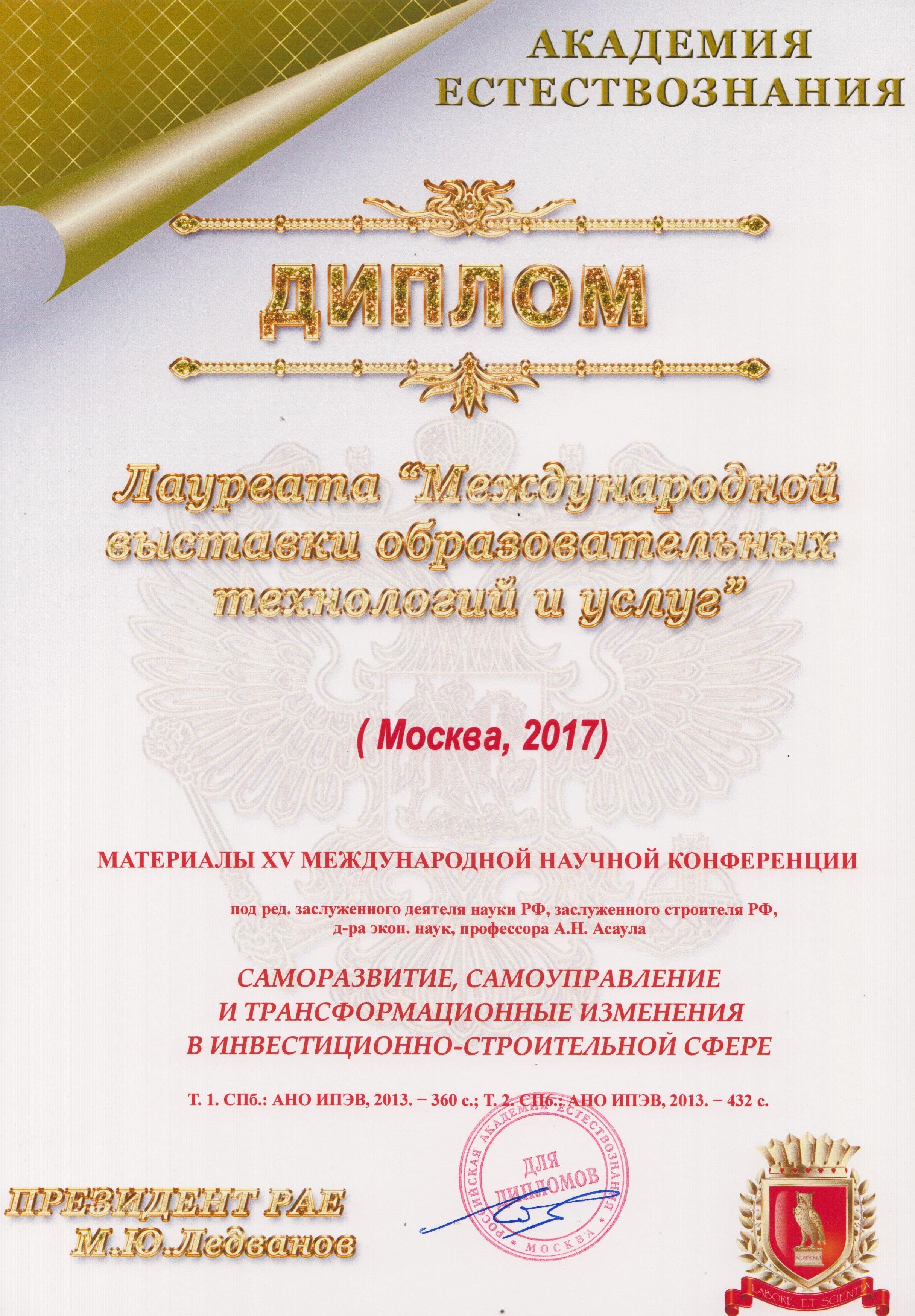 С 30 мая по 1 июня 2017 года в Российской Академии Естествознания, состоялась «XII Международная выставка образовательных технологий и услуг» (г. Москва)