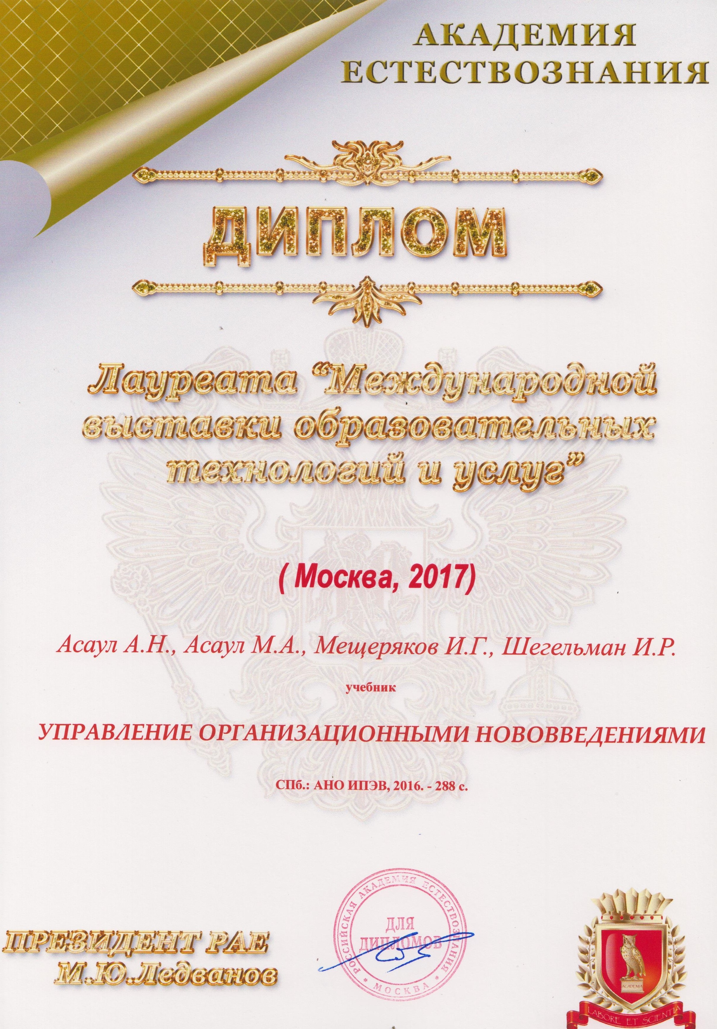 Труды научной школы ‒ лауреаты «XII Международной выставки образовательных технологий и услуг»