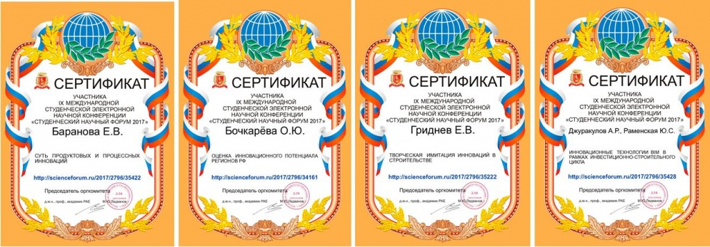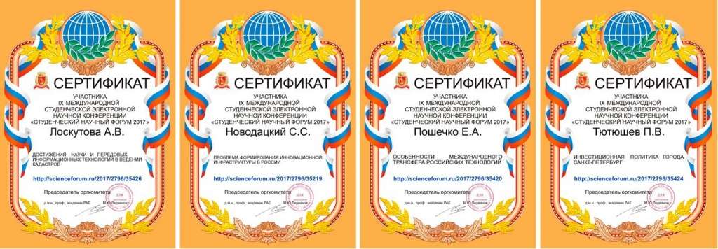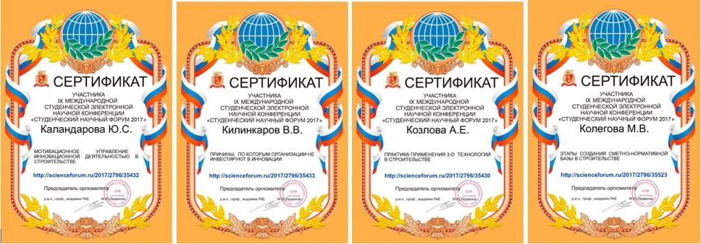 В адрес ректора направлено свидетельство об участии СПбГАСУ в качестве соорганизатора IX Международной студенческой электронной научной конференции "Студенческий научный форум 2017".
