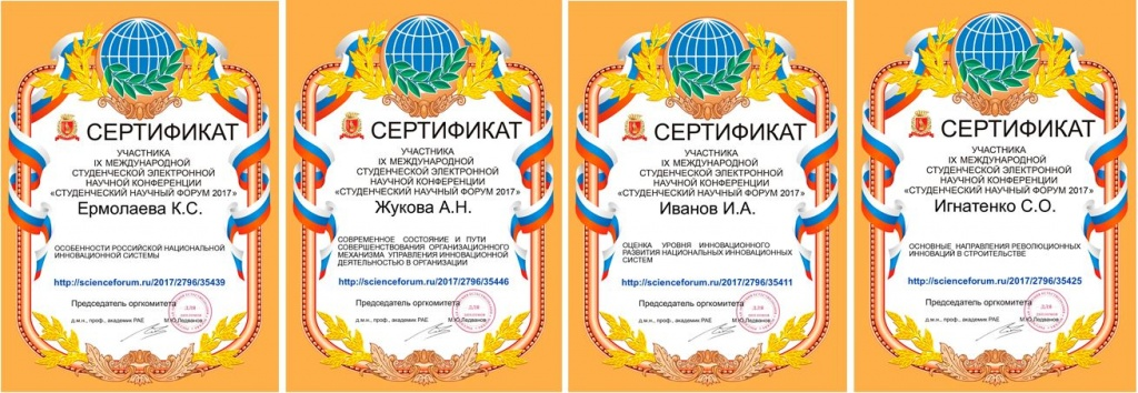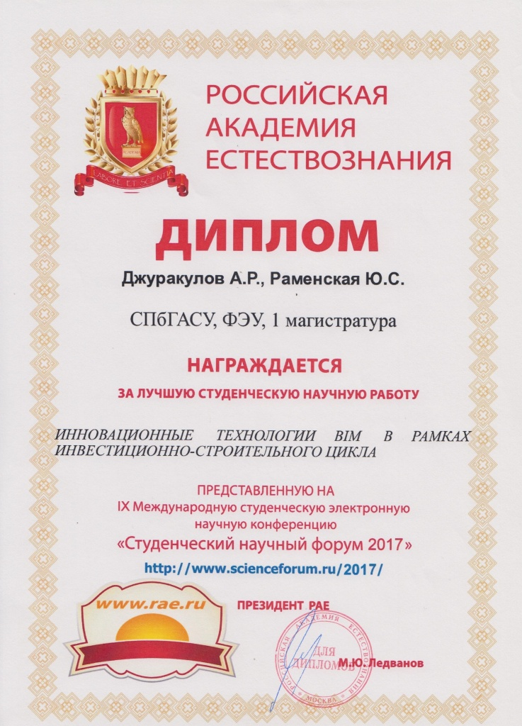 Все студенты получили сертификаты участника форума. По решению Президиума РАЕ «За лучшую студенческую работу награждены: