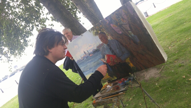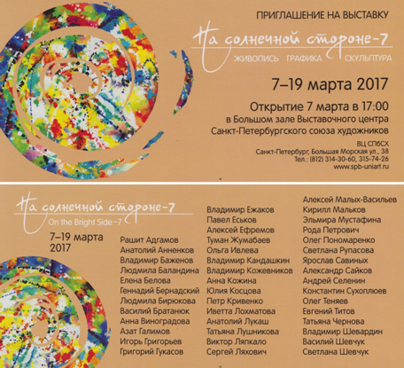 С 7 по 19 марта 2017 г. в Большом зале Выставочного центра Санкт-Петербургского союза художников прошла седьмая ежегодная выставка «На солнечной стороне». Около 300 произведений представлено 43 участниками выставки. Художник Василий Иванович Братанюк представил свои лучшие картины. Среди них и картина «Раздумья над просторами Санкт-Петербурга» портрет А.Н. Асаула. 2016г. Холст, масло. 58х89.
