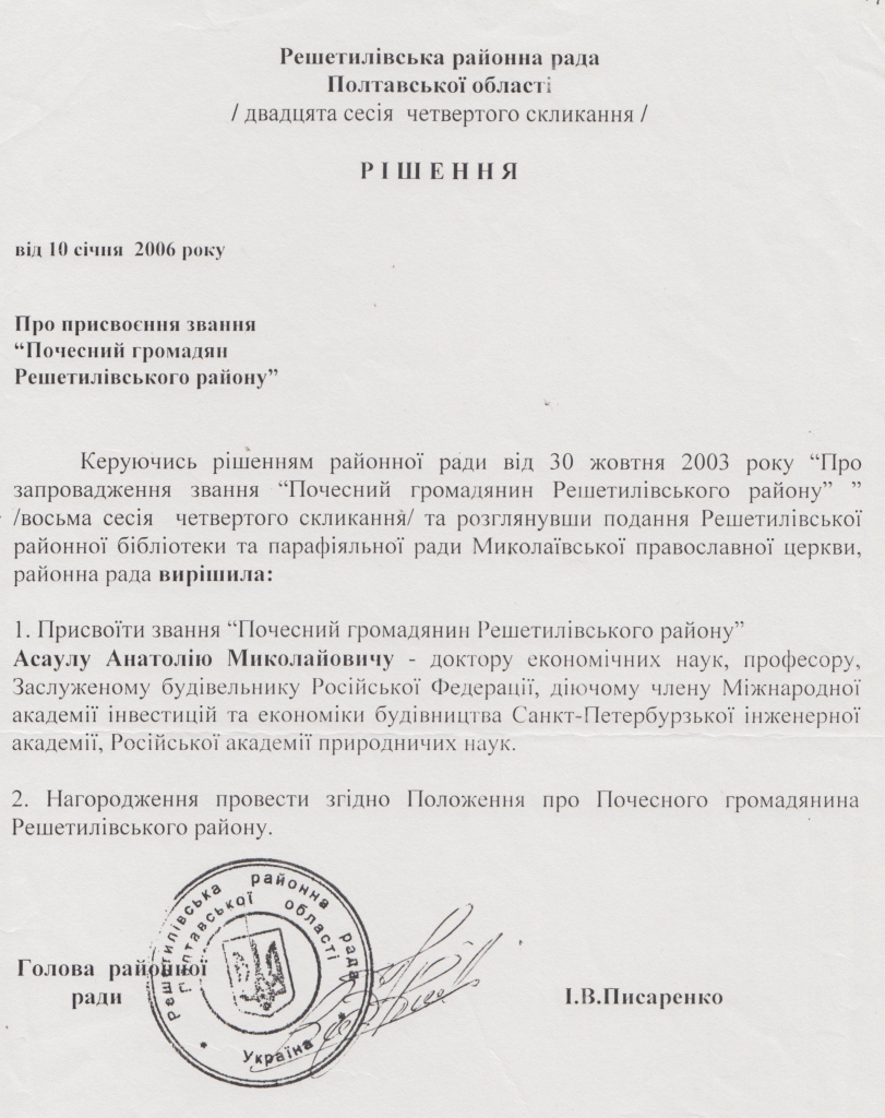 Именно Писаренко открыл (по словам И.И. Цыгана – главного редактора районной газеты «Решетилiвський вiсник») Асаула для Решетиловки.