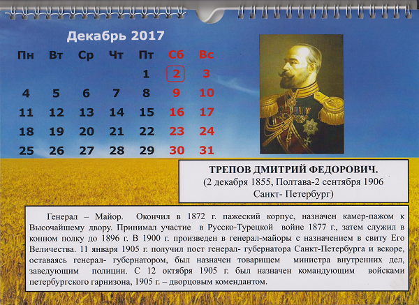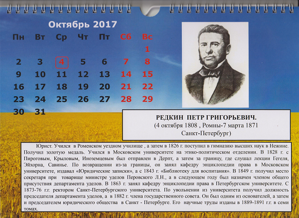 Всем участникам конференции подарен тематический календарь «Полтавчане на государственной службе в России (XVIII – начало XX веков). Профинансировал проект Малтыз Игорь Николаевич.