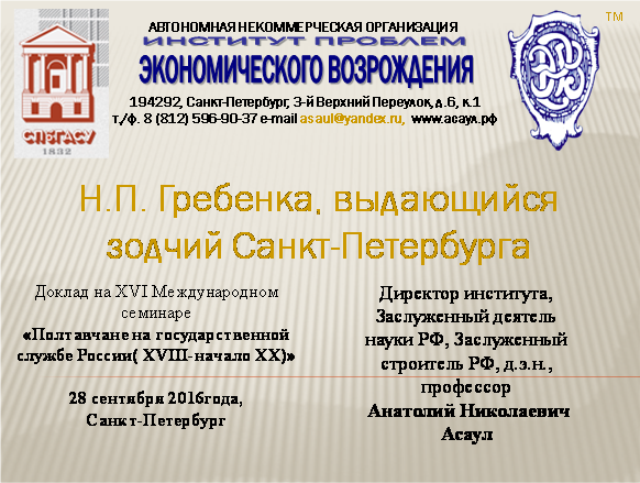 Профессор А.Н. Асаул представил доклад о жизни и творчестве выдающегося зодчего Санкт-Петербурга Н.П. Гребёнки.