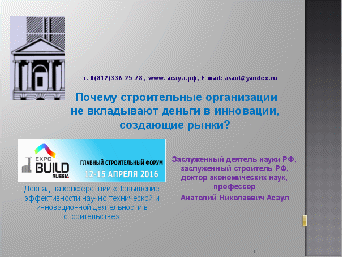 «Активизация инновационной деятельности в строительстве как фактор развития территории»; «Почему строительные организации не вкладывают деньги в инновации, создающие рынки» на конференции «Повышение эффективности научно-технической и инновационной деятельности в строительстве»