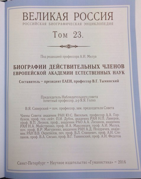В научном издательстве «Гуманистика» вышел в свет 23 том стотомной Российской библиографической Энциклопедии «Великая Россия»
