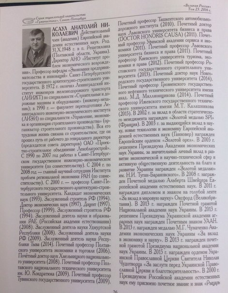 В 23 томе помещены биографии действительных членов Европейской академии естественных наук, среди которых и ученые Асаул Анатолий Николаевич, Асаул Максим Анатольевич, Асаул Николай Анатольевич: