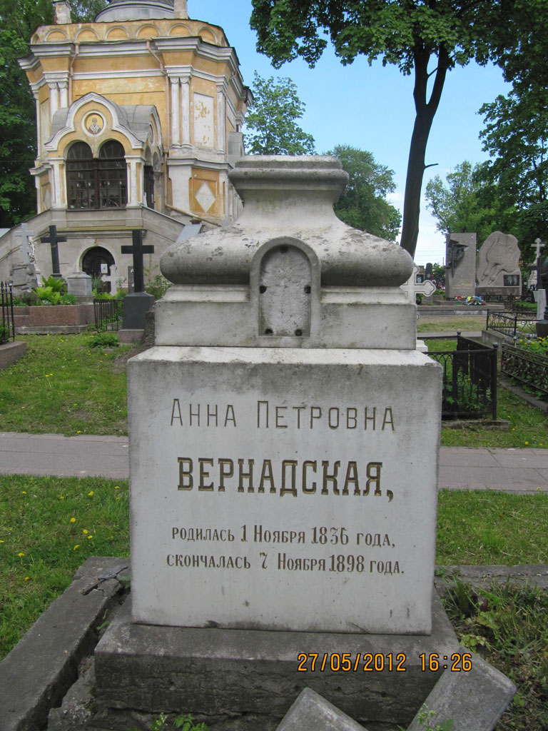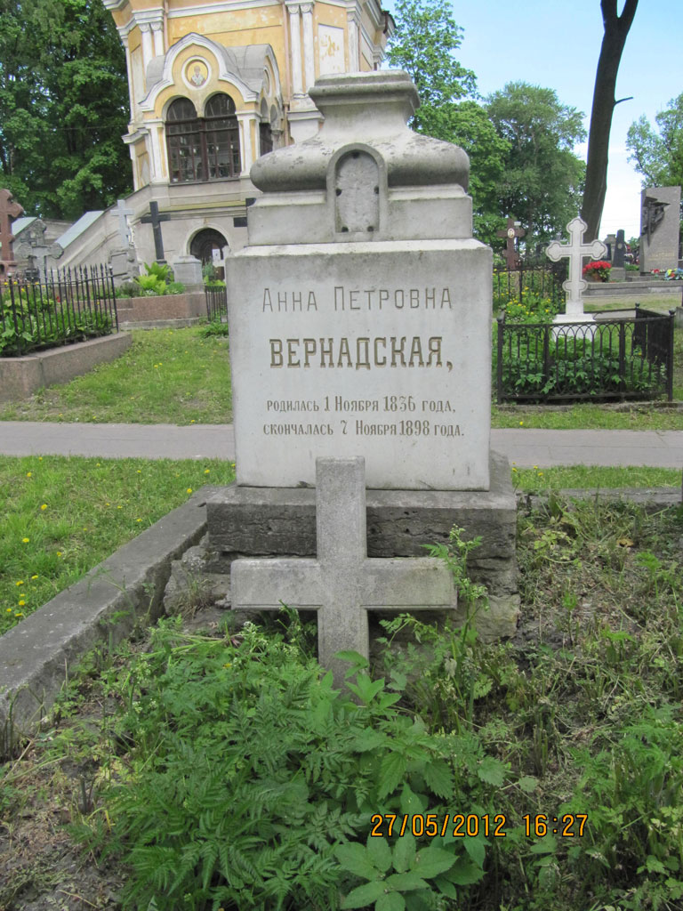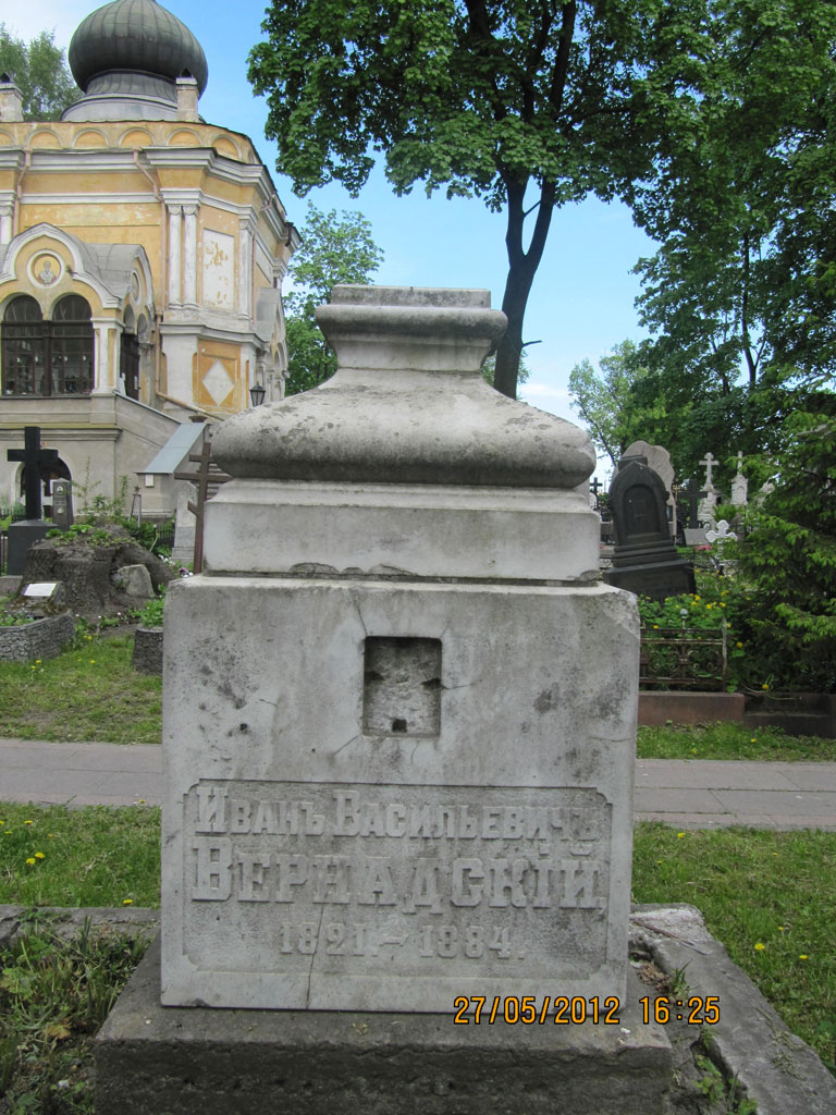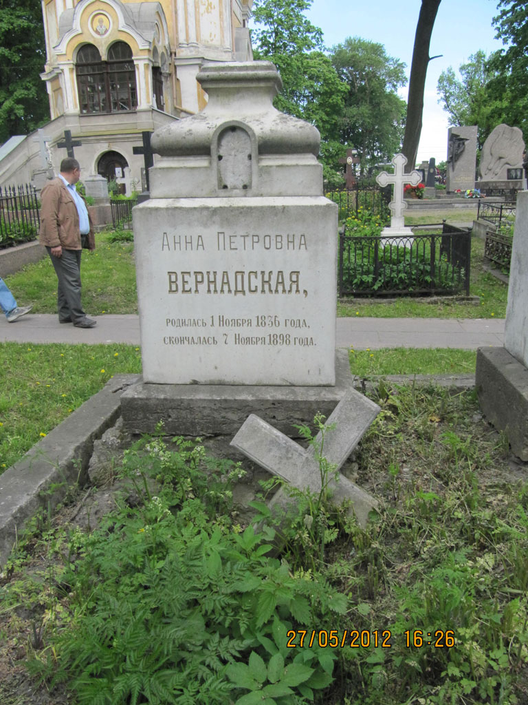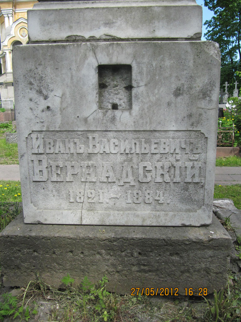 За прошедшие годы могилы родителей академика В.И. Вернадского - Ивана Васильевича и Анны Петровны частично разрушились: перекосились памятники, исчезли фотографии, утерян крест с могилы Ивана Васильевича, сломан на могиле мамы, у основания могильного комплекса появились многочисленные глубинные трещины, просела земля.