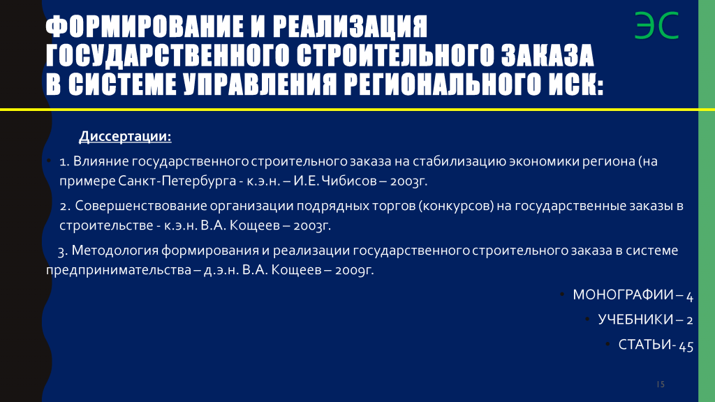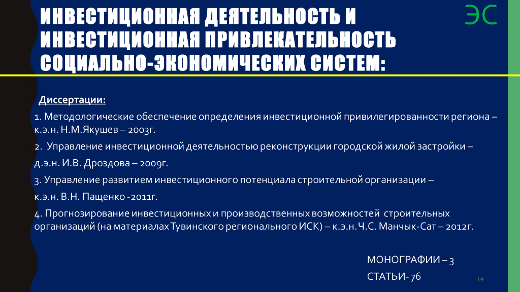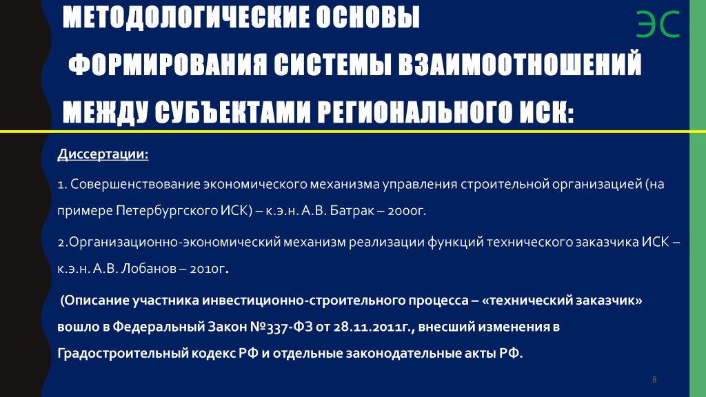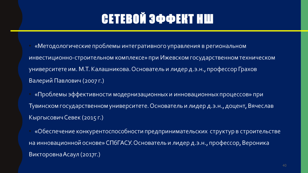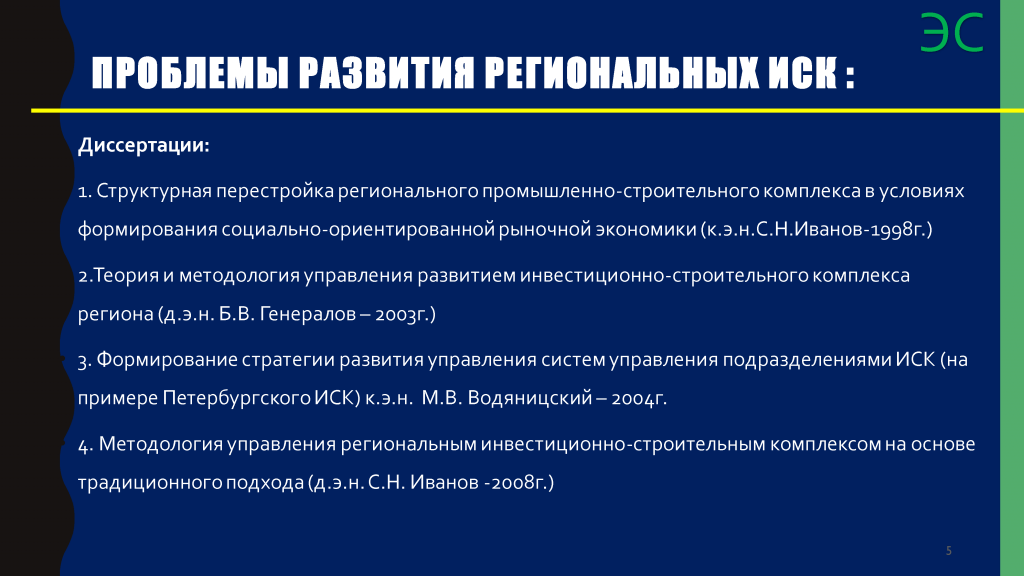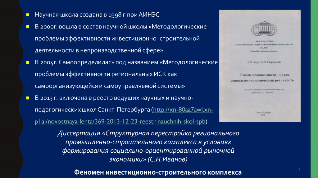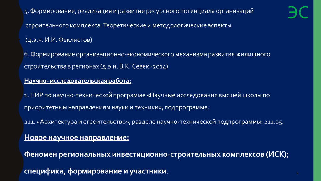 Научная школа "Методологические проблемы эффективности региональных ИСК как самоорганизующейся и самоуправляемой системы"