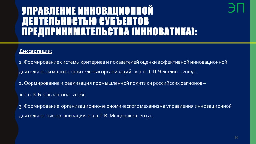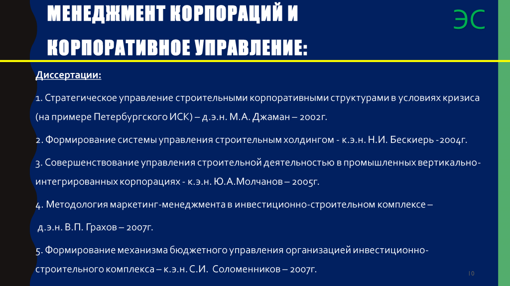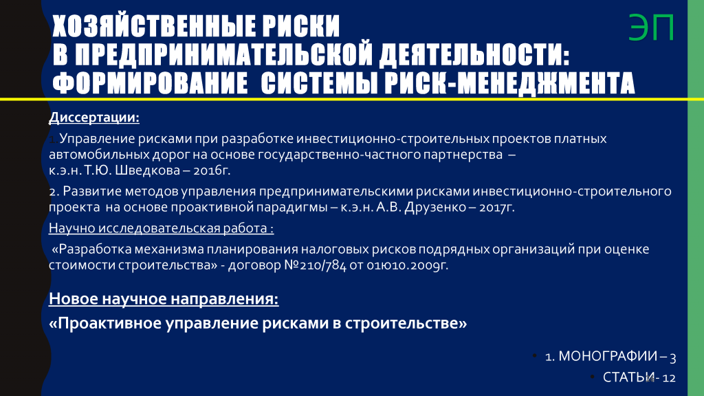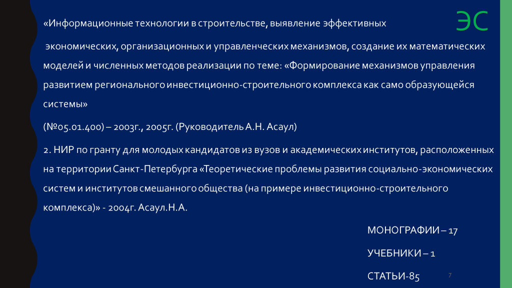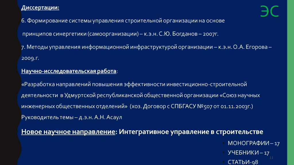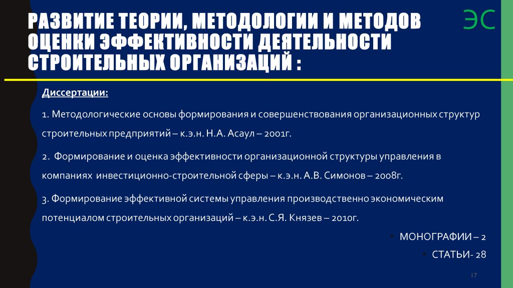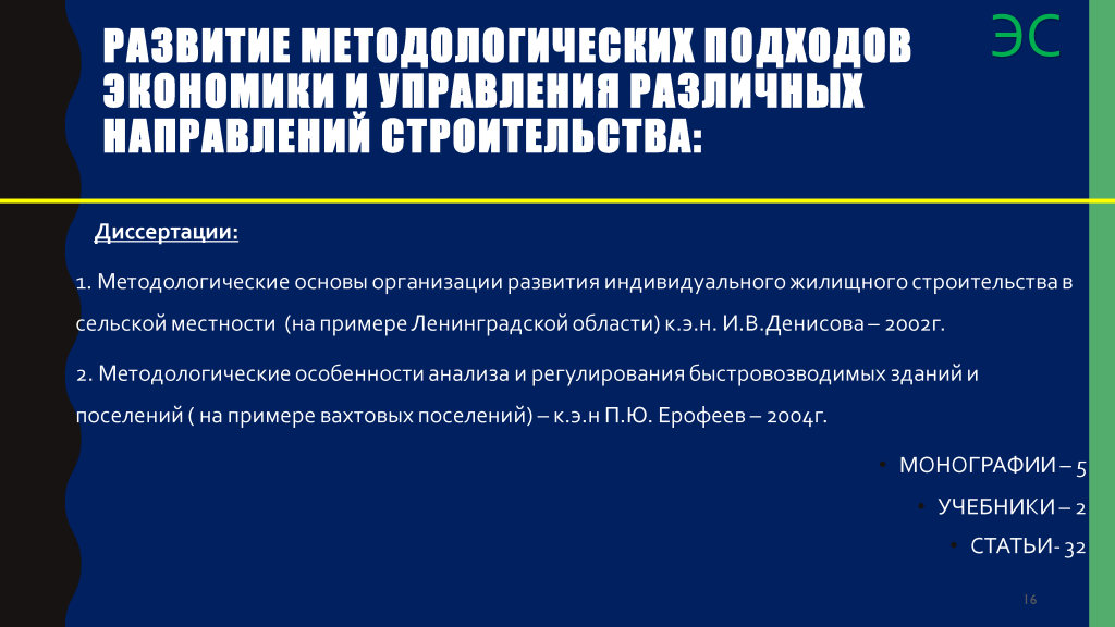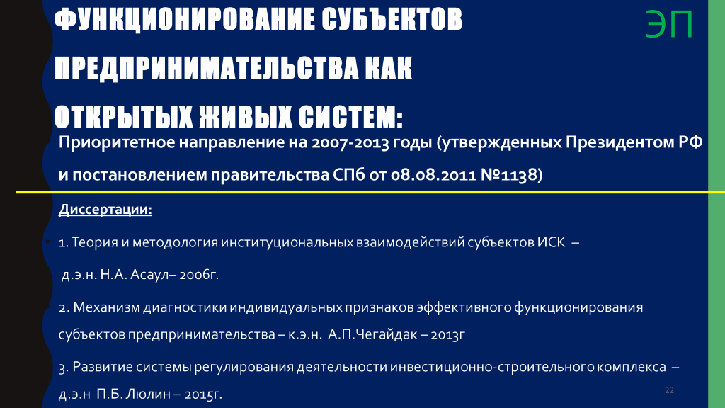 Научная школа "Методологические проблемы эффективности региональных ИСК как самоорганизующейся и самоуправляемой системы"