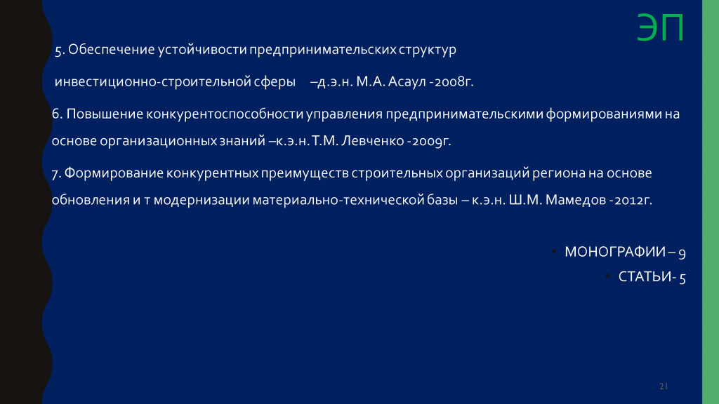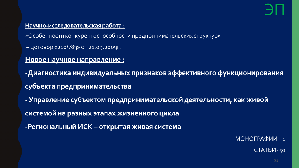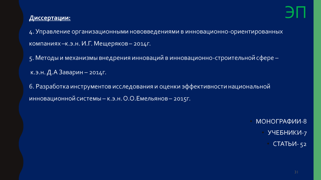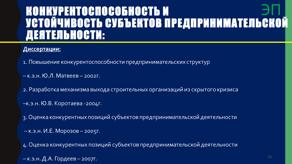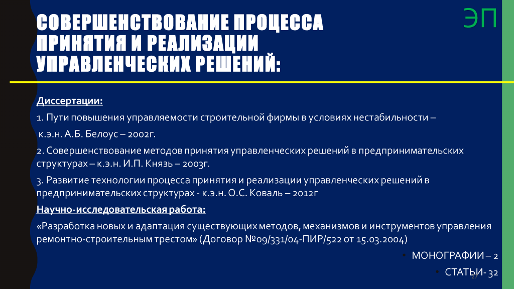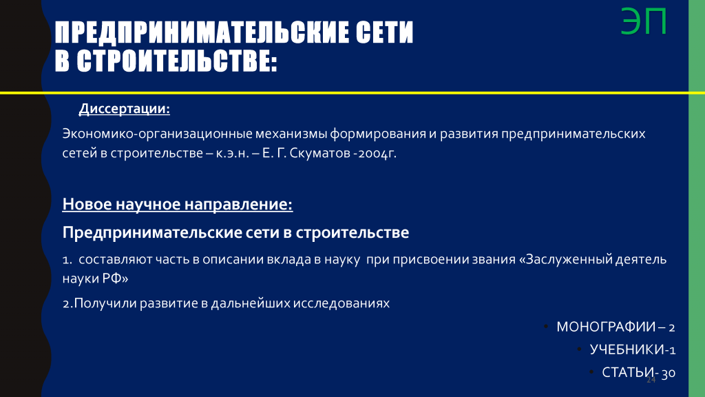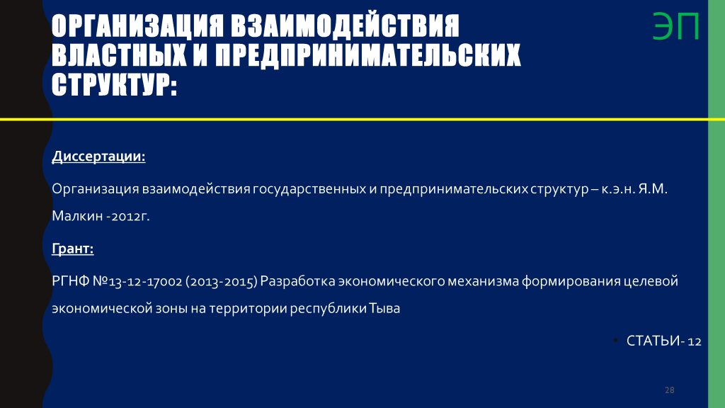 Научная школа "Методологические проблемы эффективности региональных ИСК как самоорганизующейся и самоуправляемой системы"