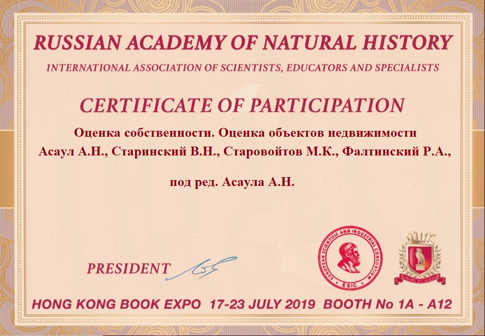 - Асаул А.Н., Старинский В.Н., Старовойтов М.К., Фалтинский Р.А., под ред. Асаула А.Н. Оценка собственности. Оценка объектов недвижимости