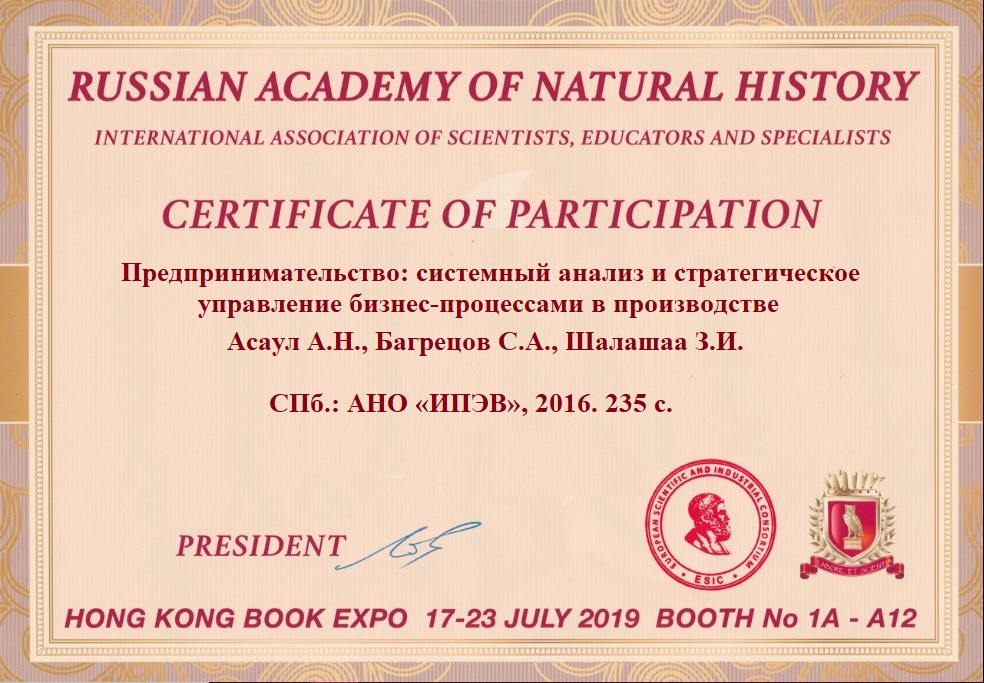 - Асаул А.Н., Багрецов С.А., Шалашаа З.И. Предпринимательство: системный анализ и стратегическое управление бизнес-процессами в производстве