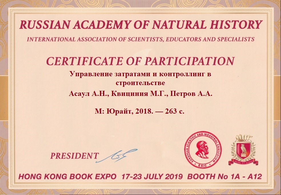 - Асаул А.Н., Квициния М.Г., Петров А.А. Управление затратами и контроллинг в строительстве