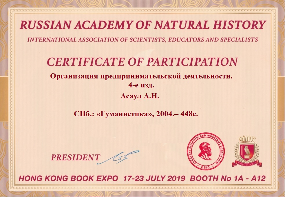 - Асаул А.Н. Организация предпринимательской деятельности. 4-е изд.