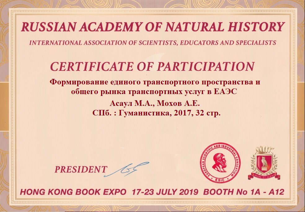 - Асаул М.А., Мохов А.Е. Формирование единого транспортного пространства и общего рынка транспортных услуг в ЕАЭС