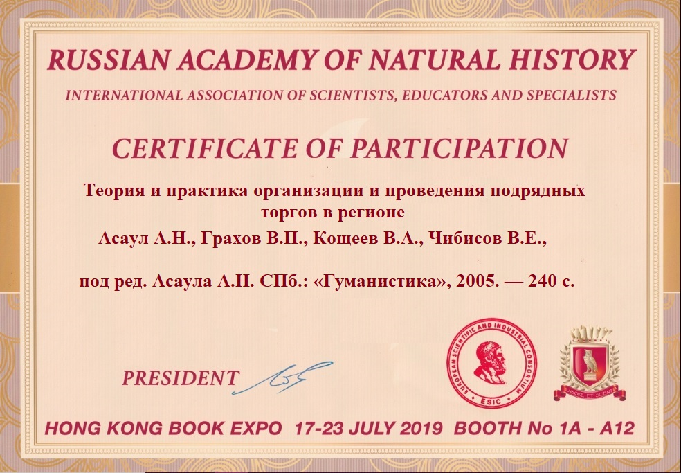 - Асаул А.Н., Грахов В.П., Кощеев В.А., Чибисов В.Е., под ред. Асаула А.Н. Теория и практика организации и проведения подрядных торгов в регионе