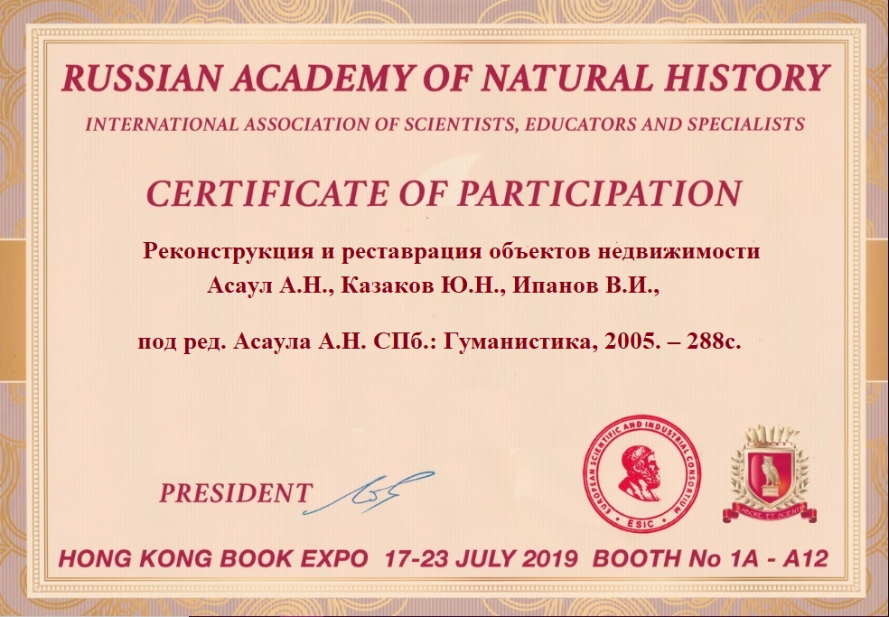 - Асаул А.Н., Казаков Ю.Н., Ипанов В.И., под ред. Асаула А.Н. Реконструкция и реставрация объектов недвижимости