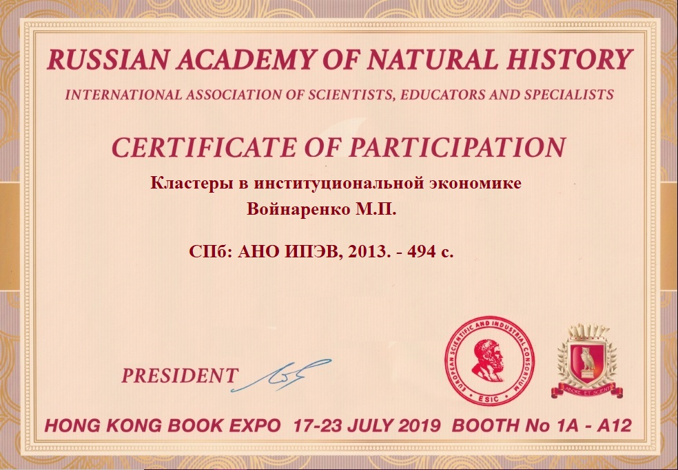 - Войнаренко М.П. . Кластеры в институциональной экономике