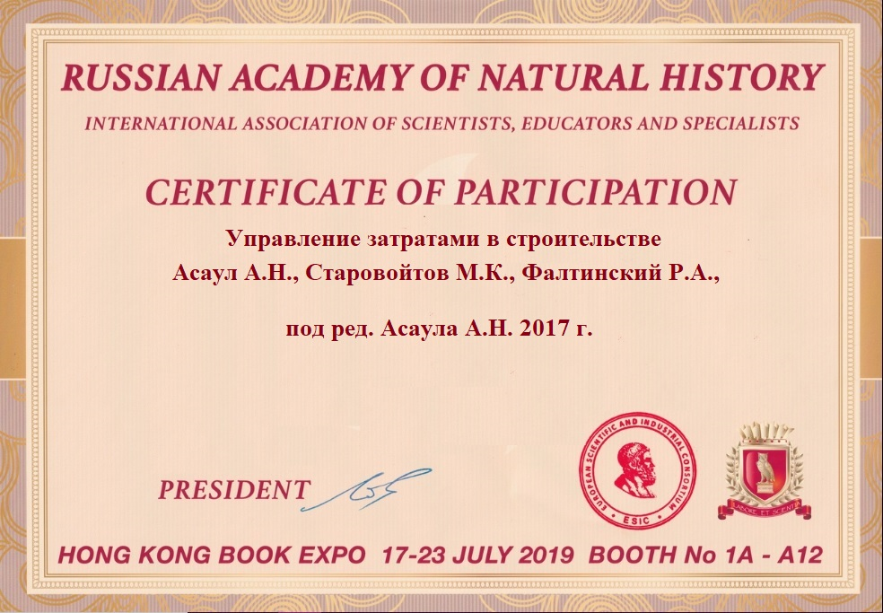 - Асаул А.Н., Старовойтов М.К., Фалтинский Р.А., под ред. Асаула А.Н. Управление затратами в строительстве